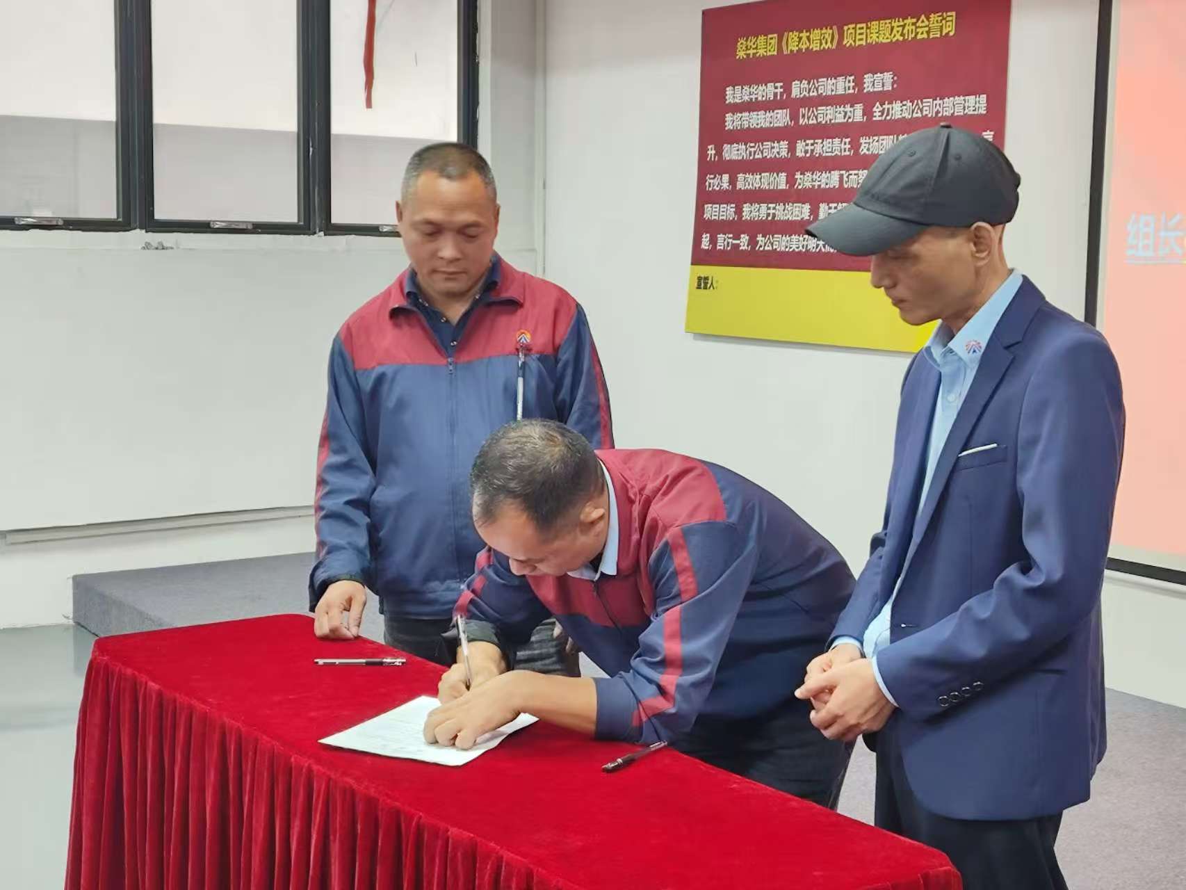 至此,項目從決策到執行的組織體系全面建立,權責清晰,重任在肩。 三、承諾于心,擔當于行 在目標承諾環節,各改善小組負責人依次上臺,鄭重簽署課題目標承諾書。每一筆簽名,不僅代表對目標的公開承諾,更承載著對成果的責任與擔當,展現出團隊使命必達的決心。