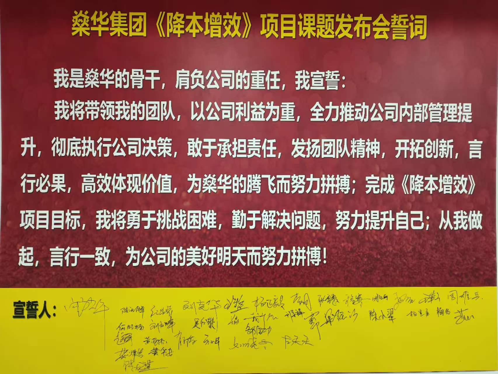 四、誓言鏗鏘,寄語殷切 在陳副總經理帶領下,全體改善成員莊嚴宣誓,承諾全力以赴推動管理提升,助力燊華實現跨越發展。