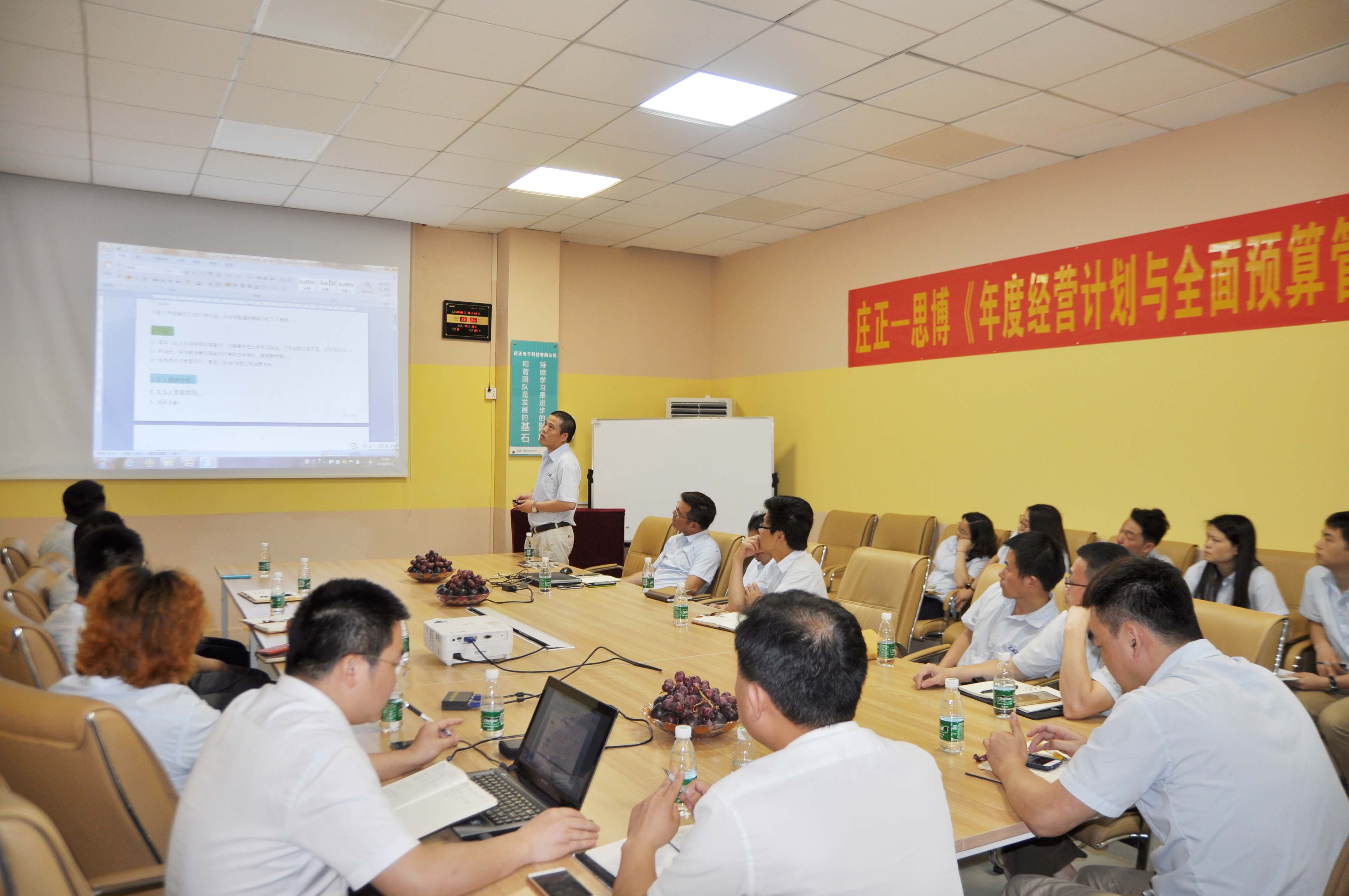 東莞市莊正電子科技有限公司《年度經營計劃與全面預算管理》計劃發布會,于2016年 5月 11 日舉行,思博-韓舜民老師主持了本次的會議,韓舜民老師對年度經營計劃的前期容易存在的一些問題進行了講解.