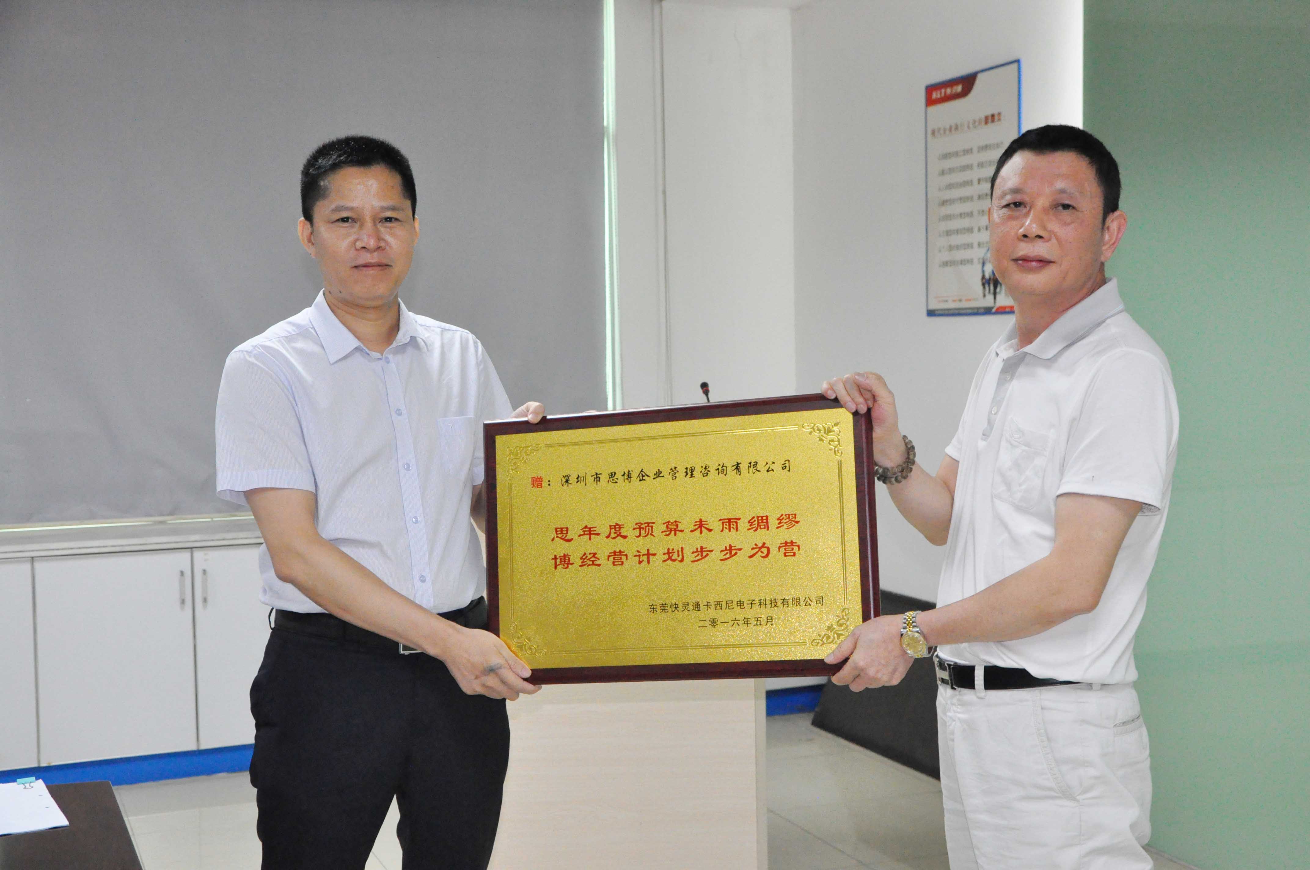 2016年5月18日,為期6個月的《年度經營計劃與全面預算管理》輔導項目,在東莞快靈通卡西尼電子科技公司會議室圓滿結項。本次會議由思博項目組老師主持,快靈通公司中高層參與本次會議,6個月通過導入《年度經營計劃與全面預算管理》取得的效果,得到了客戶的信任和認可。