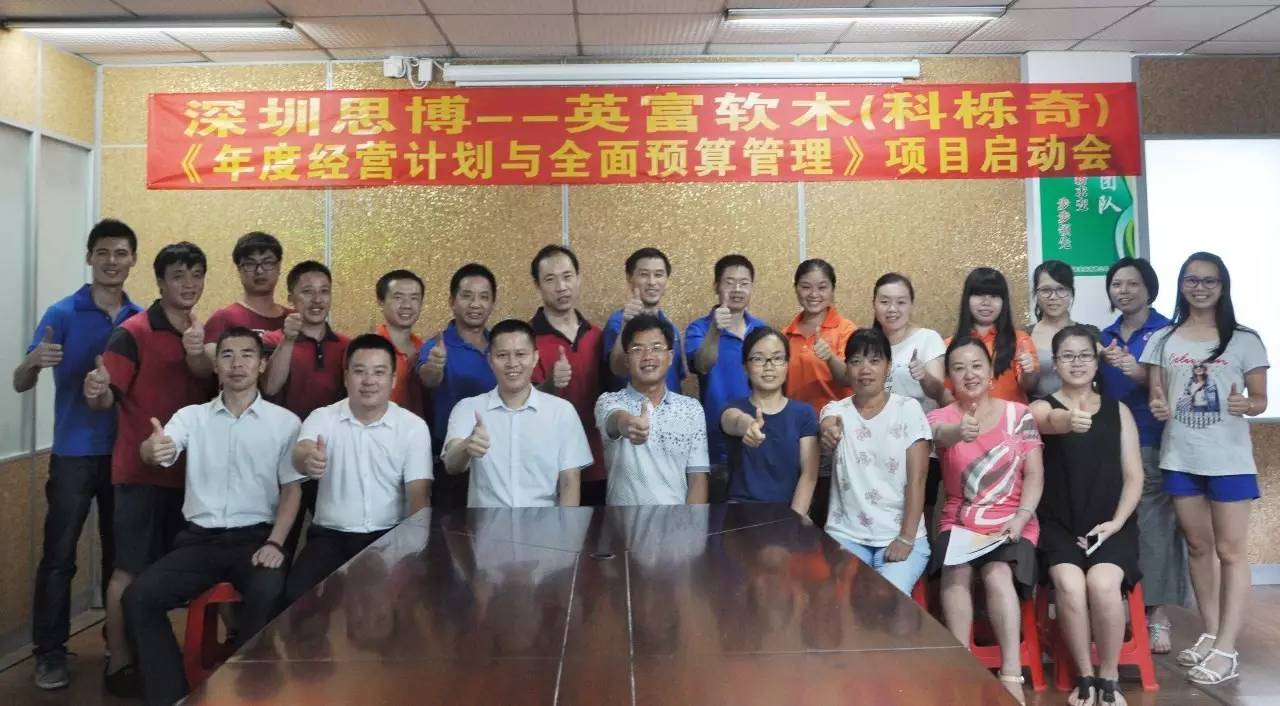 2016年7月18日,在深圳思博輔導老師(韓舜民老師、吳峰老師)的指導下,東莞市英富軟木制品有限公司《年度經營計劃與全面預算管理》管理項目全面啟動。啟動大會在東莞市英富軟木制品有限公司會議室舉行。