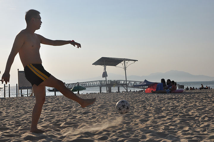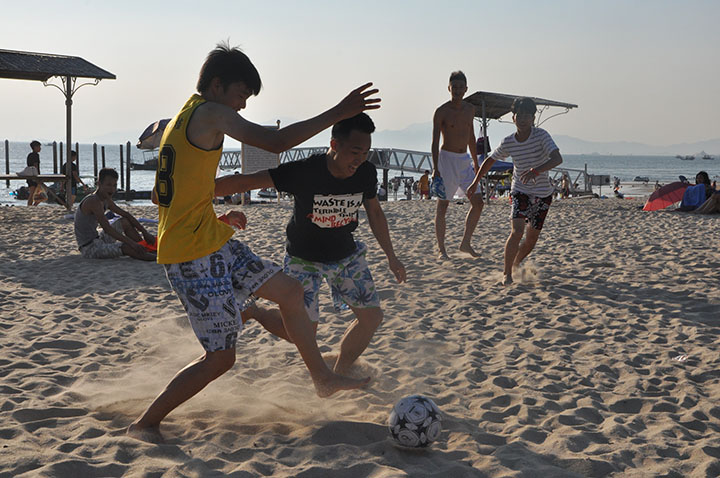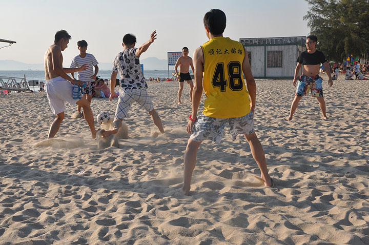 舌尖上的大戰結束后,當然到了體力上的PK!下午5:30,沙灘足球大賽戰幕打響!