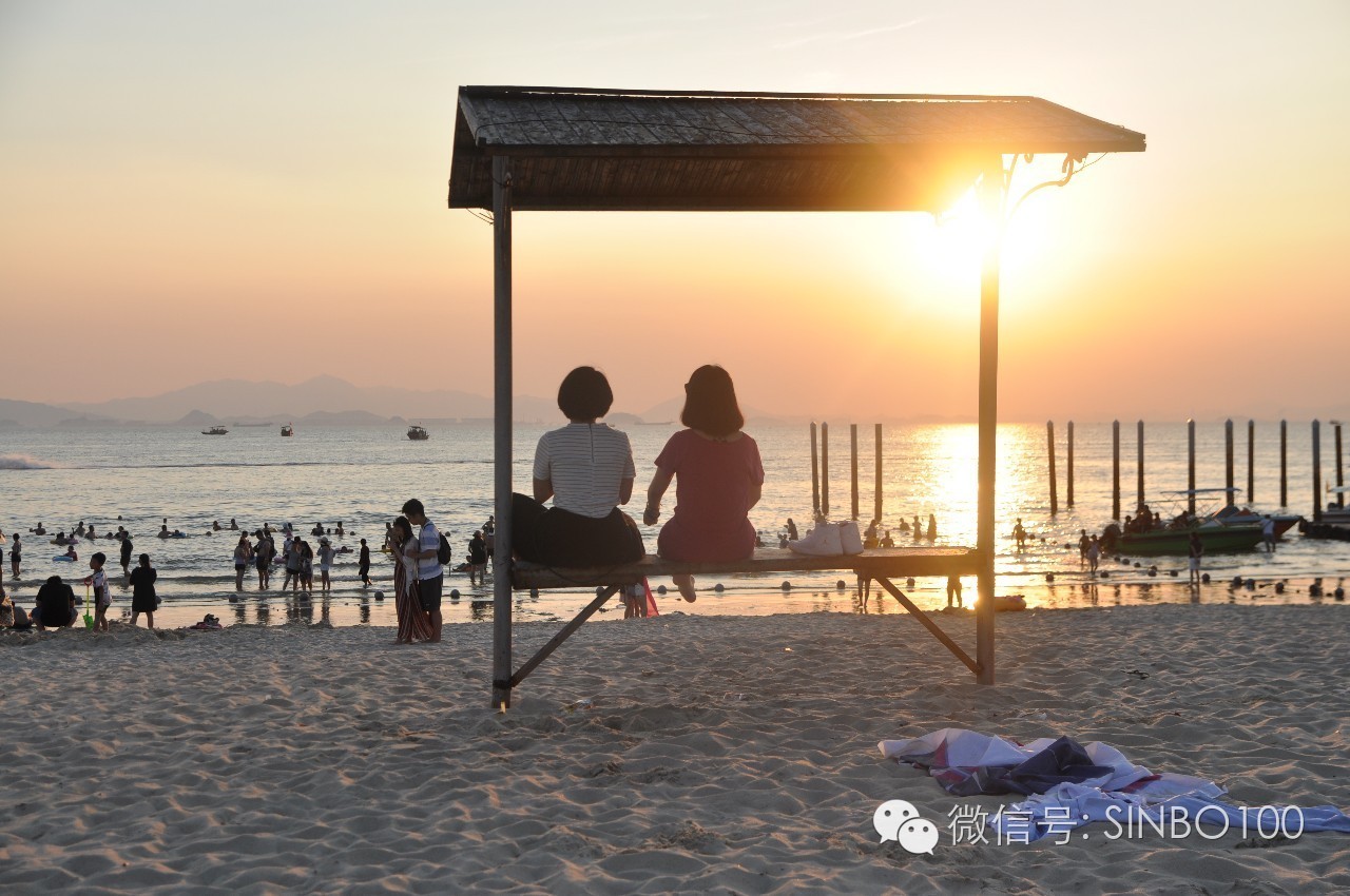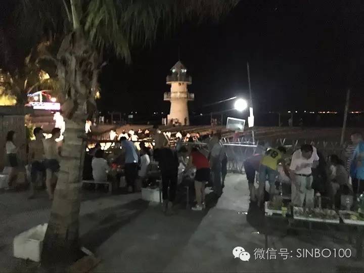 黑色的天空伴隨著明亮的星星,這時的大海和白天截然不同,如睡著了一般,沙灘上依稀撒著數點模糊的人影,有相互追逐的,竊竊私語的,也有躺在沙灘上的,都在享受這份寧靜的時光。度假的第一天就這樣在歡聲笑語后安安靜靜地結束了!