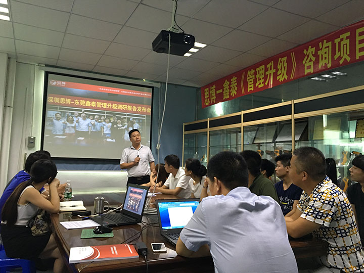 2016年8月3日,東莞市鑫泰儀器儀表有限公司項目總結會,在鑫泰會議室舉行。會議總結了思博公司進駐企業輔導3個月以來的各項數據成果,并討論下半年目標如何達成。