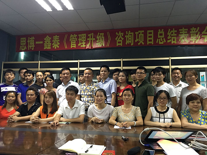 鑫泰羅總對各管理層進行了表彰,也對思博團隊進行了感謝發言:“鑫泰公司管理升級完滿收官,感謝思博袁老師辛苦付出,感謝嚴總和楊老師對我司大力支持!合作非常成功!通過此次管理升級,公司打造了一個全新的、標準化、規范化、數據化的管理模式,讓我們大家一起努力,創造一個美好的未來。”