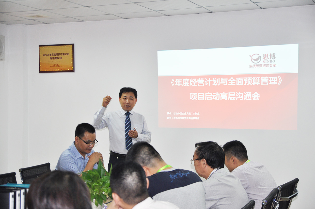 2016年9月5日,在深圳思博輔導老師(伍純華老師 、曾燦老師)的指導下,汕頭市澄海區美高寶玩具有限公司《企業年度經營計劃與全面預算》管理升級項目啟動會,在汕頭市澄海區美高寶玩具有限公司會議室舉行。
