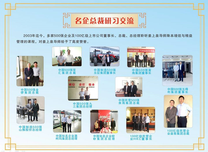> > 輔 導 過 的 企 業 < < 汽車行業:豐田、本田、沃爾沃、宗申、中通 家電行業:格力、海爾、美的、蘇泊爾 食品行業:金鑼、雙匯 其他行業:中國石化、中國兵器、魯能、九牧、五征